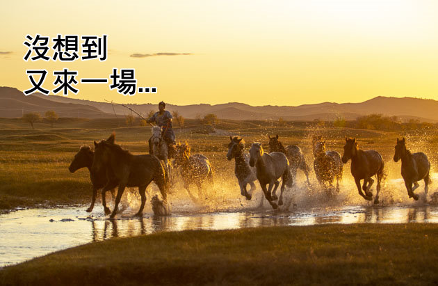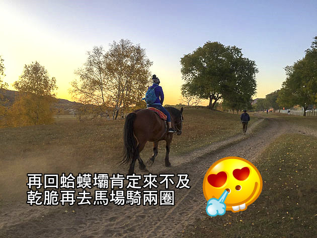 蛤蟆垻小水庫日出 → 馬場騎馬 → 午餐:羊蠍子火鍋 → 下午:天太永 灘塗 (中途車子打滑) / 馬場騎馬(三圈60)